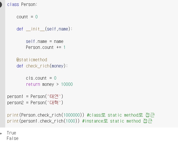 근데 static method에 cls나 self를 받아서 상태를 바꿀수 없지는 않아