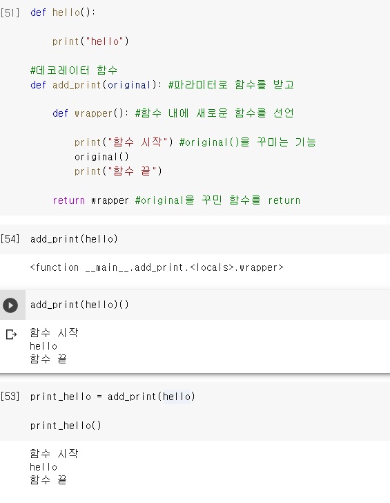 원래 함수 original()의 위 아래로 함수 시작, 함수 끝을 출력해서 살짝 꾸며주는 함수가 add_print()