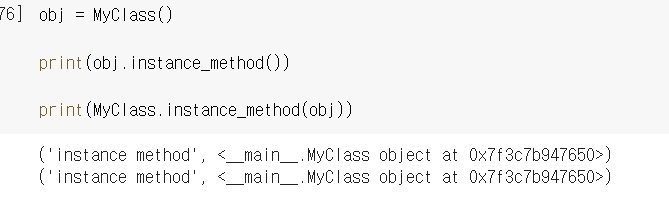 instance를 수동으로 넣기 위해 (class명).(method명)(instance,...)으로도 사용가능하지만 권장하진 않는다