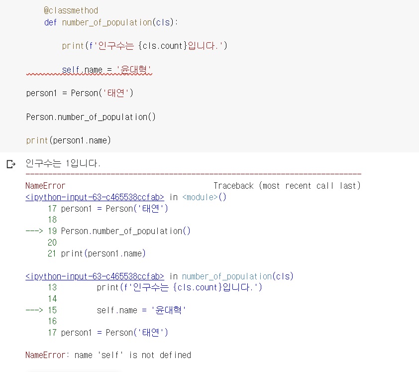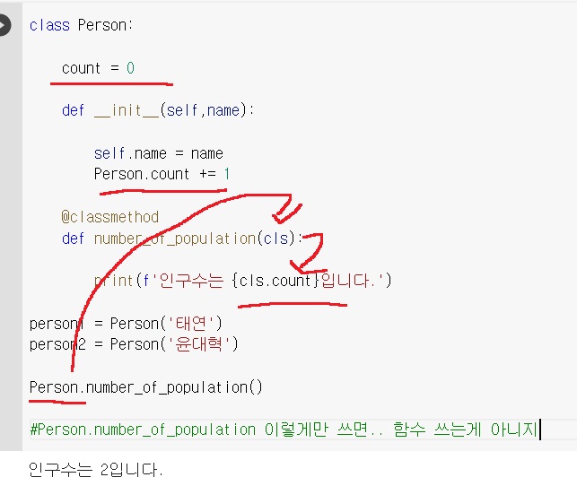 그래서 cls.<instance변수>는 안돼.. 하지만 self.<class변수>는 가능하고