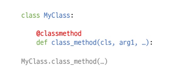 마찬가지로 첫번째인자를 어떻게 쓰든지간에 class로 받아들이며, cls로 쓰는게 일반적이다