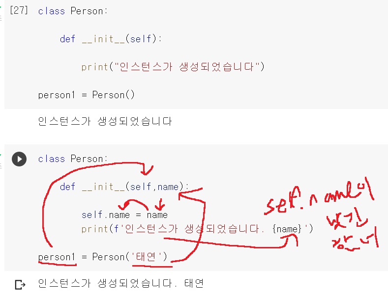instance를 생성하면 __init__이 자동으로 수행되어 print문이 출력된다는것 확인