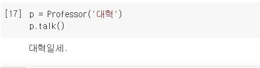 Professor()은 talk()를 가지고 있어서 p.talk()하면 부모의 talk()를 쓰지 않고 새로 재정의한 Professor()의 talk()로 동작함
