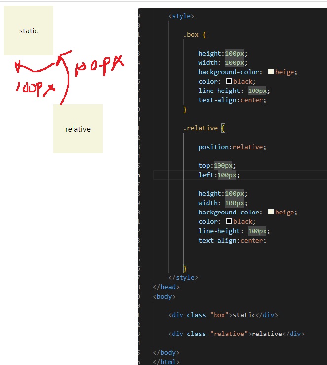 원래 위치 static에서 떨어진 상대적 위치에 box를 위치시킨다
