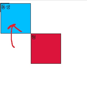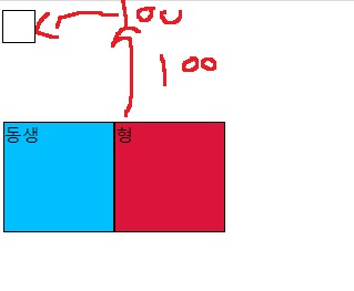 형을 relative로 top 100px; left 100px로 이동시킨 모습