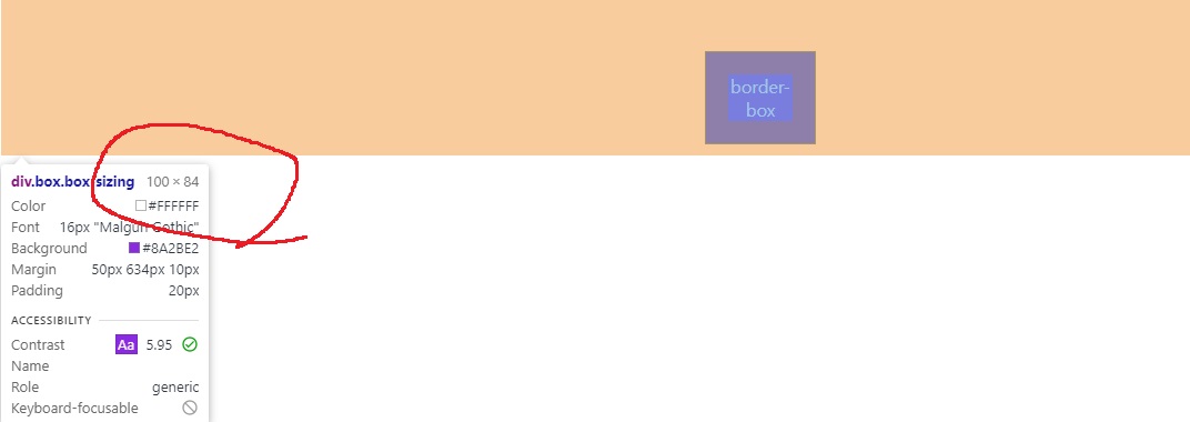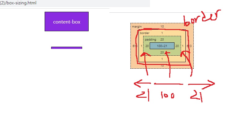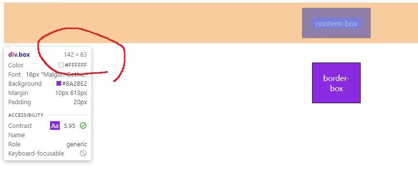 위와 같이 만든 content-box의 크기는?? 100px??