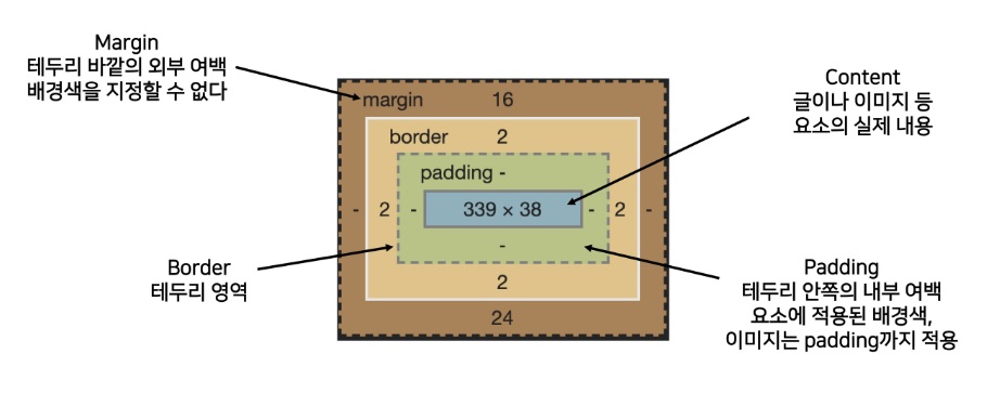 테두리와 바깥 다른 요소 사이 공백이 margin이다