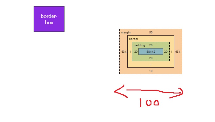 width를 100px로 주고 box-sizing을 border-box로 주면 border까지의 너비를 100px로 만들어준다.