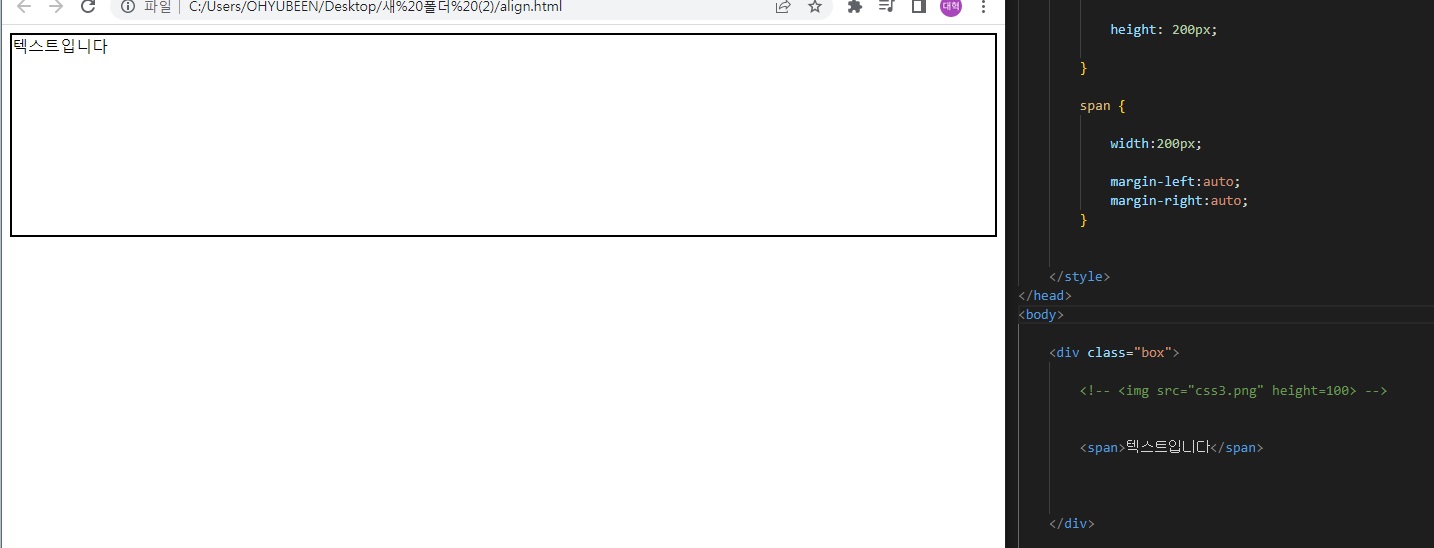span태그에서 margin left, right auto를 사용해도 변화없다