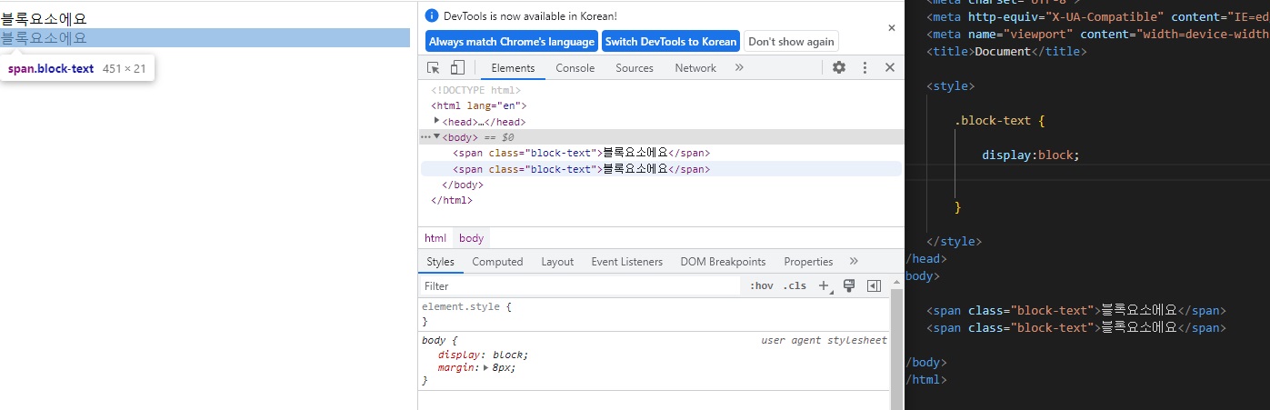 정직하게 글자길이만큼 가로폭을 차지해서, 다음 span이 왼쪽부터 오른쪽으로 한줄에 쌓일 수 있다