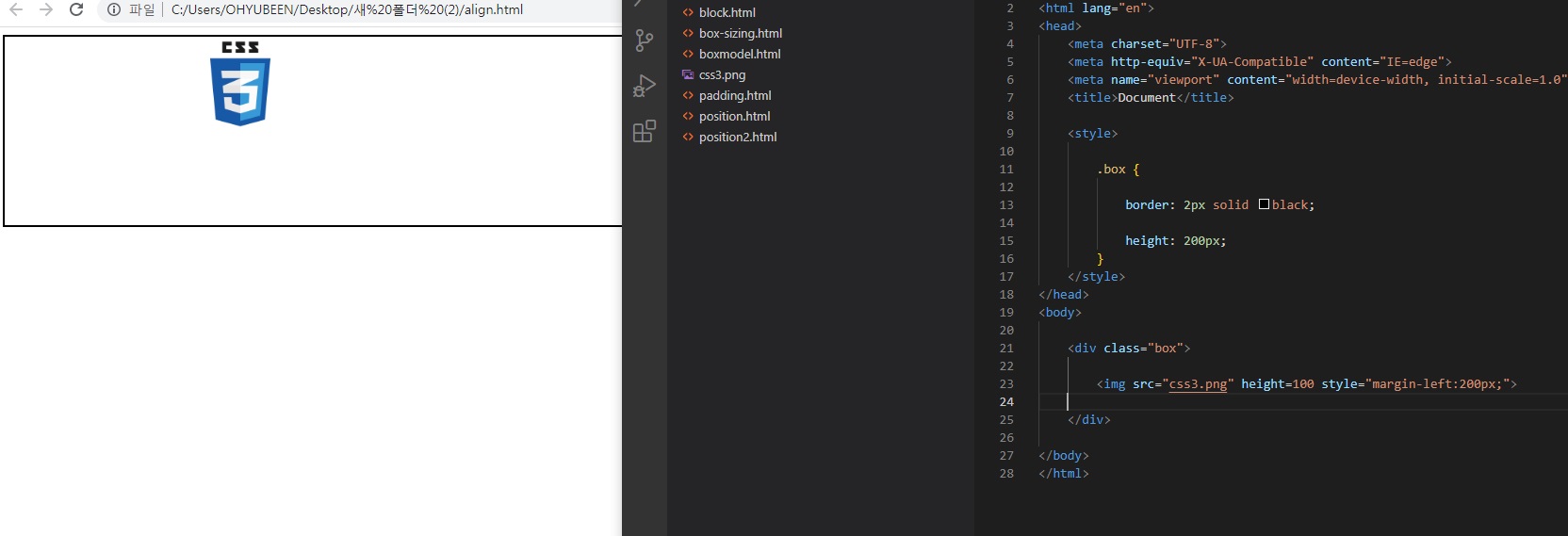 margin은 외부 요소와의 공백을 나타내니까 당연히 img에 적용해도 정렬이 가능함