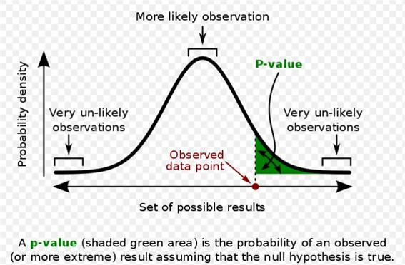 위키피디아에서 ‘In null hypothesis significance testing, the p-value is the probability of obtaining test results at least as extreme as the results actually observed, under the assumption that the null hypothesis is correct’