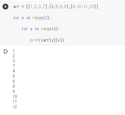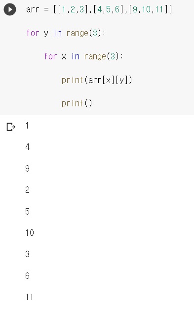 예를 들어 arr[0][0], arr[1][0], arr[2][0]은 0열의 원소
