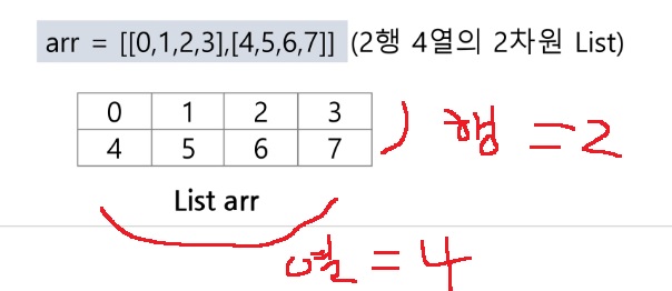 2차원 배열 각 칸의 좌표를 (x,y)라고 하면, arr[y][x]로 접근할 수 있다