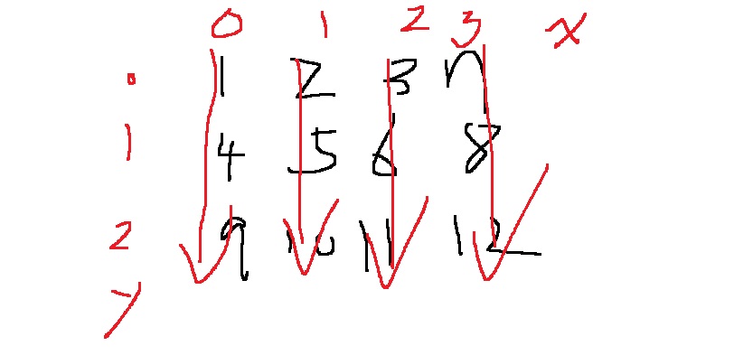 에서 x,y 좌표 뒤집어서 넣으면 열방향 순회가 된다