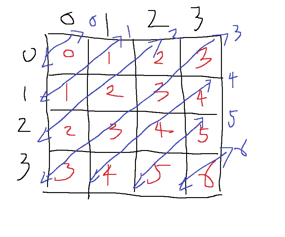 2차원 배열의 각 칸은 (x,y)좌표를 가지는데, 만약 x+y를 각 칸에 적어본다면 무슨 일이 일어날까