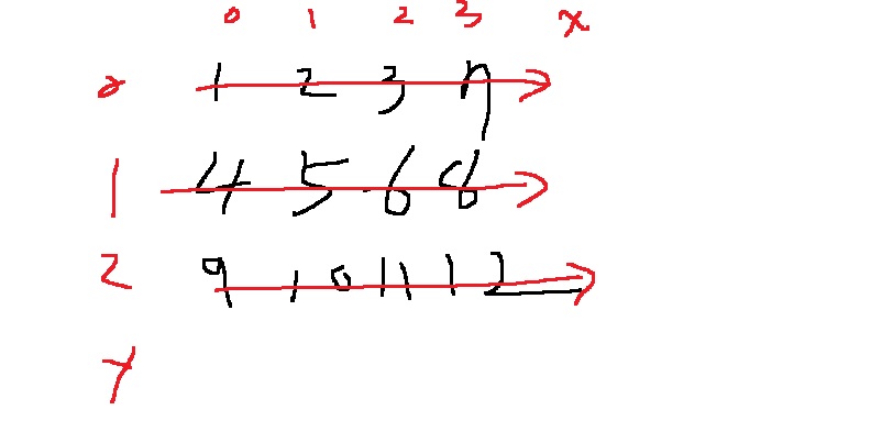 arr = [[1,2,3,7],[4,5,6,8],[9,10,11,12]]