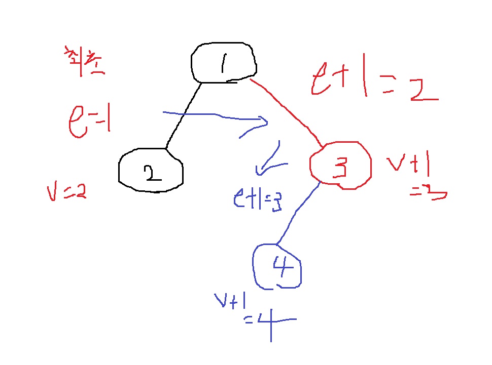 그림과 같이 최초에 노드 = 2이면 이들을 연결하는 간선 = 1이고