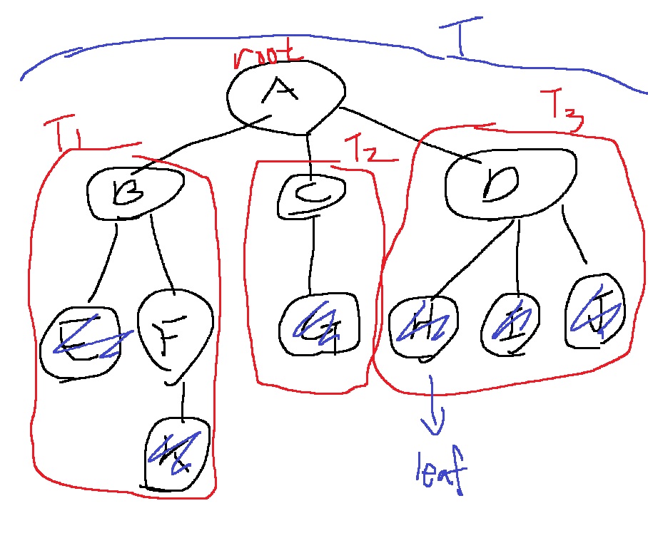 루트 이외의 나머지 노드들은 n개의 부분집합 $T_{1}, T_{2}, T_{3},... , T_{n}$으로 분리 가능하다