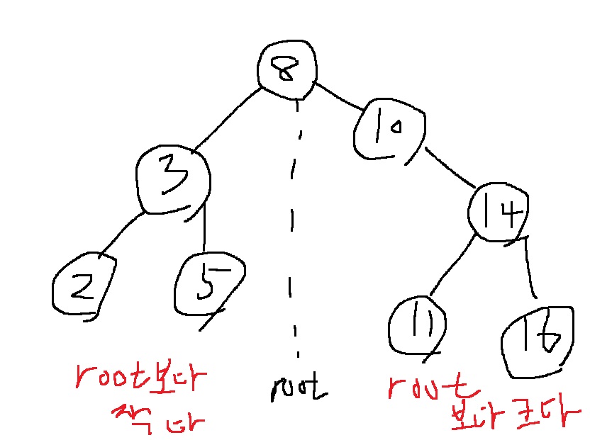 >> 무슨 말이냐면 루트 노드 기준으로 왼쪽 값들은 루트 노드보다 작고