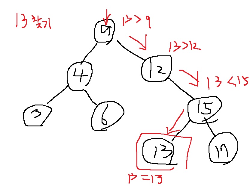 13을 찾고자 할때 9부터 시작해서 13 > 9니까 오른쪽 이동