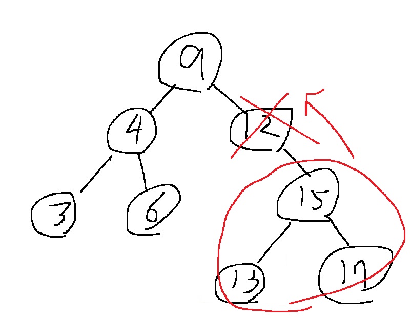 그런데 루트 노드 9를 지운다면??? 골치 아파짐