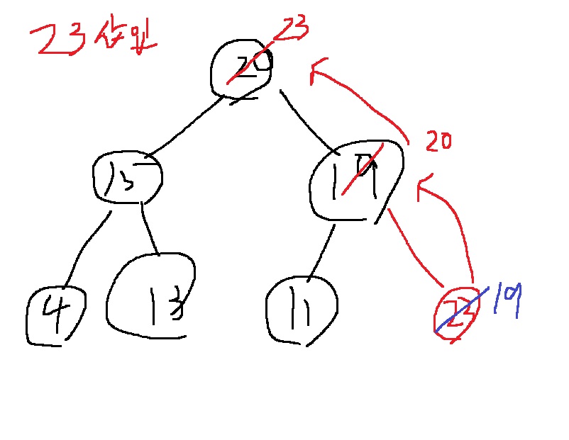 루트 노드 23을 삭제하고 반환하면