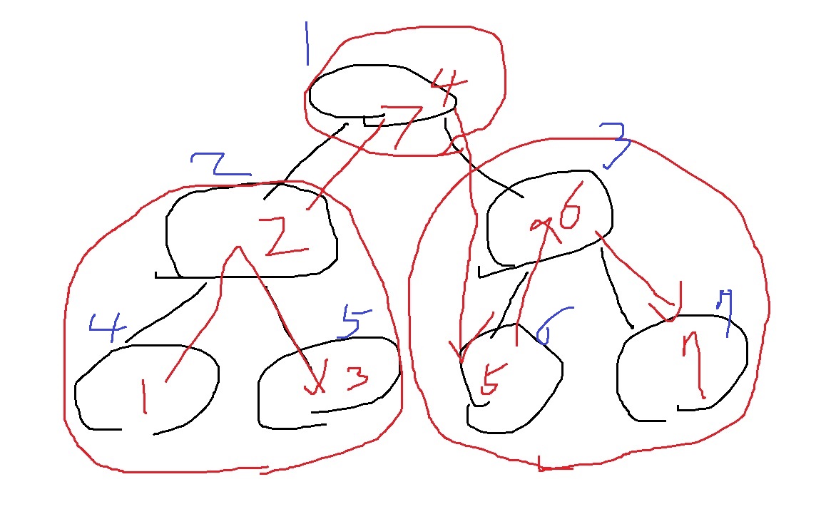 위 그림과 같이 1 > 2 > 3 > 4 > 5 > 6 > 7 순서대로 어떤 데이터를 넣는다면(파란색은 노드 번호)