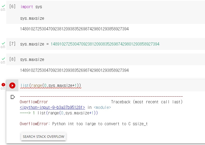 이게 overflow가 나더라고.. 아니 파이썬에서는 아무리 큰 정수도 overflow가 안나는거 아니었어? 했는데