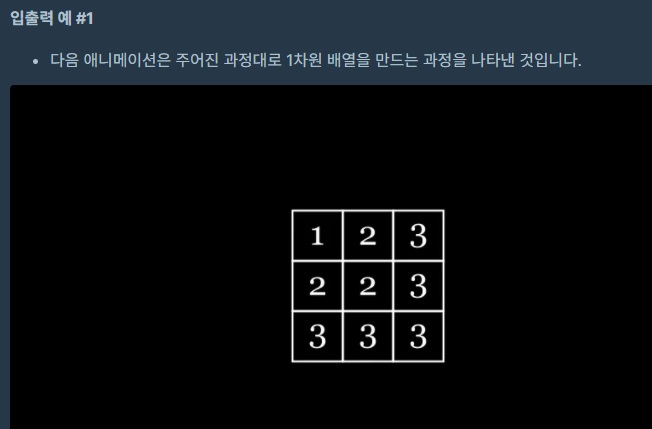 3) 1행, 2행, ... , n행을 잘라내어 모두 이어붙인 새로운 1차원 배열을 만듭니다.