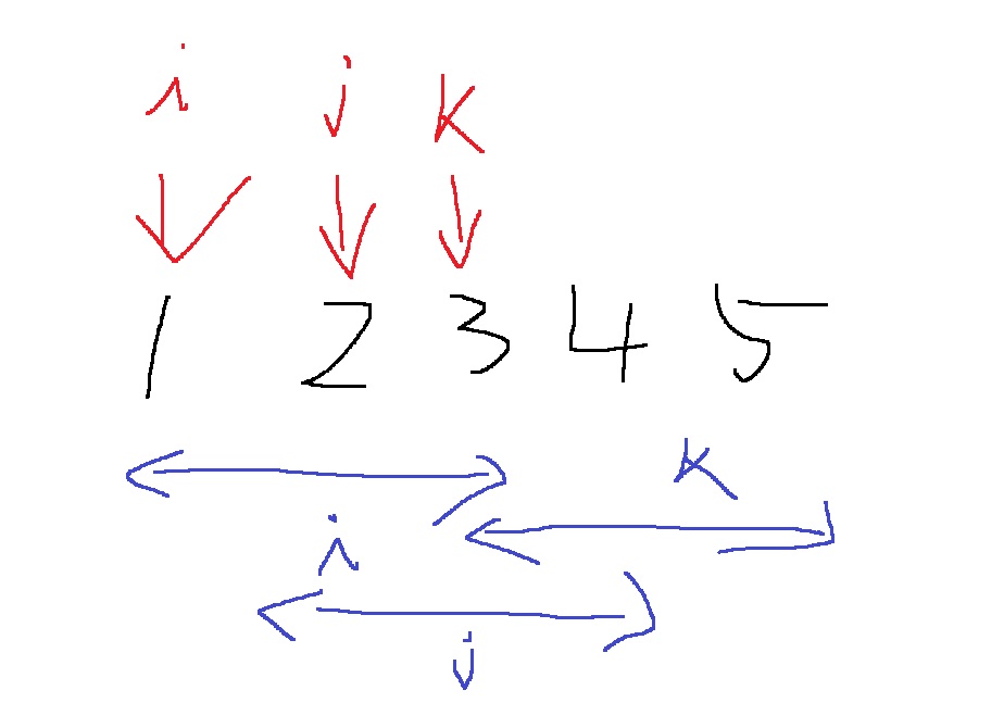 3개의 index i,j,k를 배열 내에서 움직이면서 찾을 수 있는데