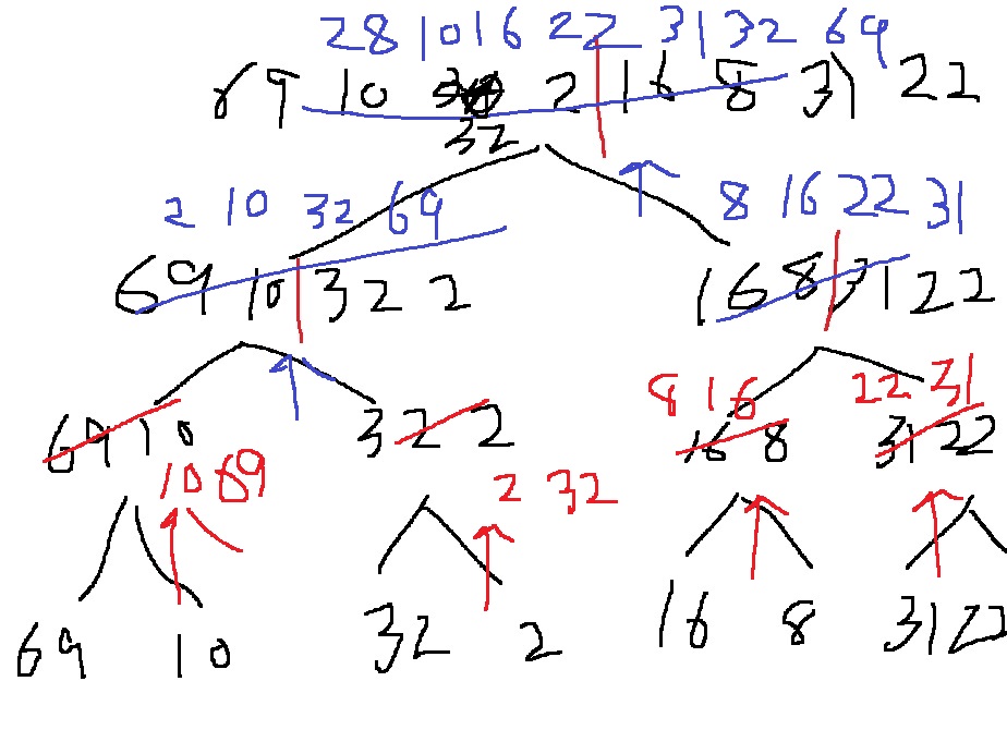 [69,10,30,2,16,8,31,22]를 병합정렬한다면??