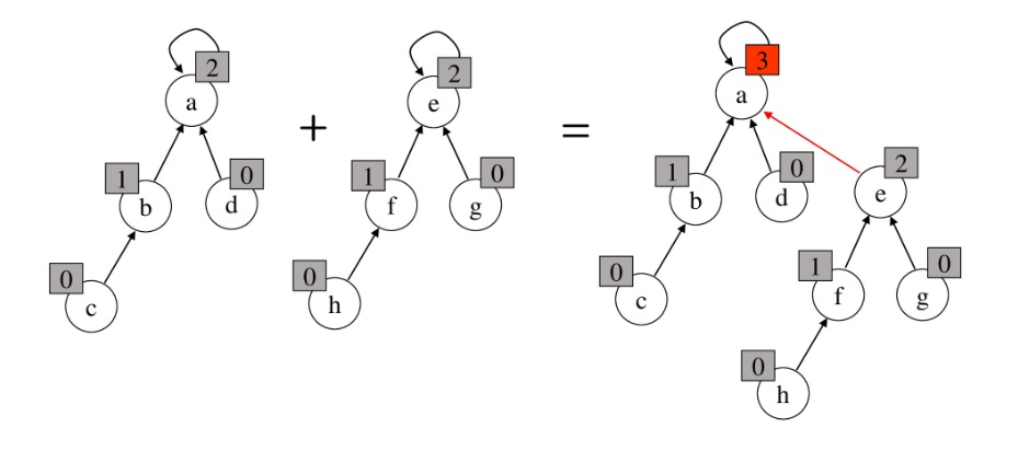 rank가 서로 다르면 문제가 없는데 rank가 동일한 경우에 두 집합을 병합하면, 다음과 같이 rank가 증가하게 된다