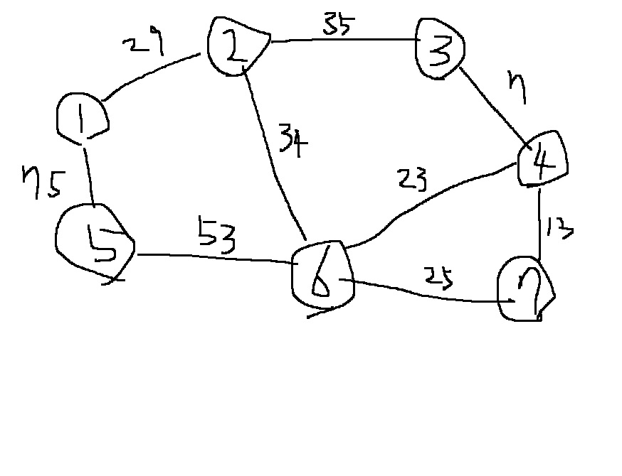 다음 그래프에서 크루스칼 알고리즘에 따라 최소 신장 트리를 구해보자.