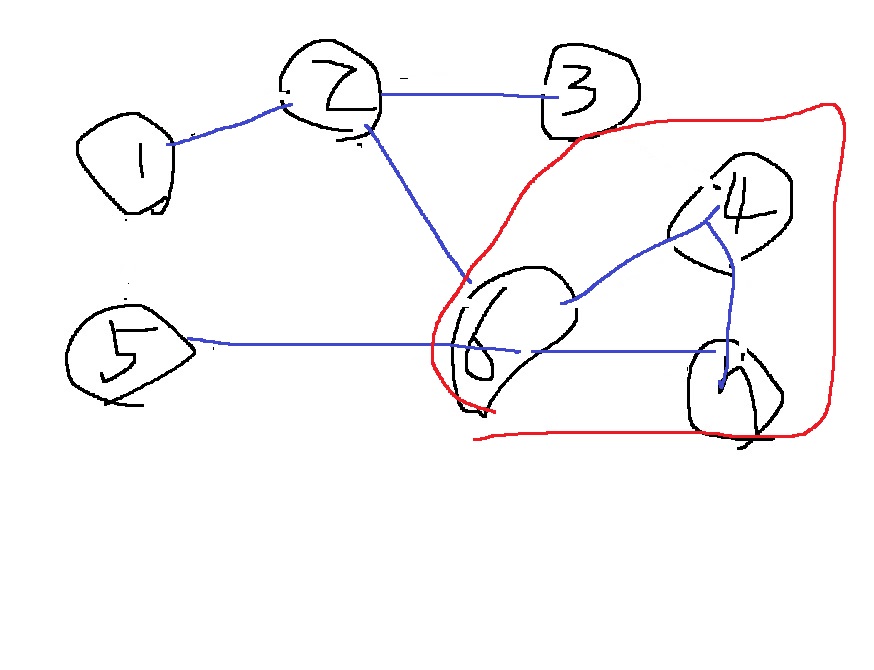 다음은 노드 4-6-7에서 사이클이 발생하므로 신장트리가 아니다.