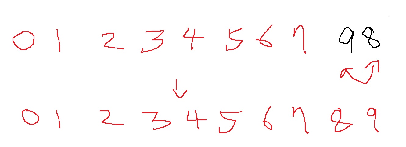 어떻게 이 카드를 정렬할 수 있을까? 보통은 카드를 빠르게 훑고 숫자가 0부터 9까지로 구성된 걸 눈치챈 다음에 카드를 0부터 9까지 순차적으로 나열할 것