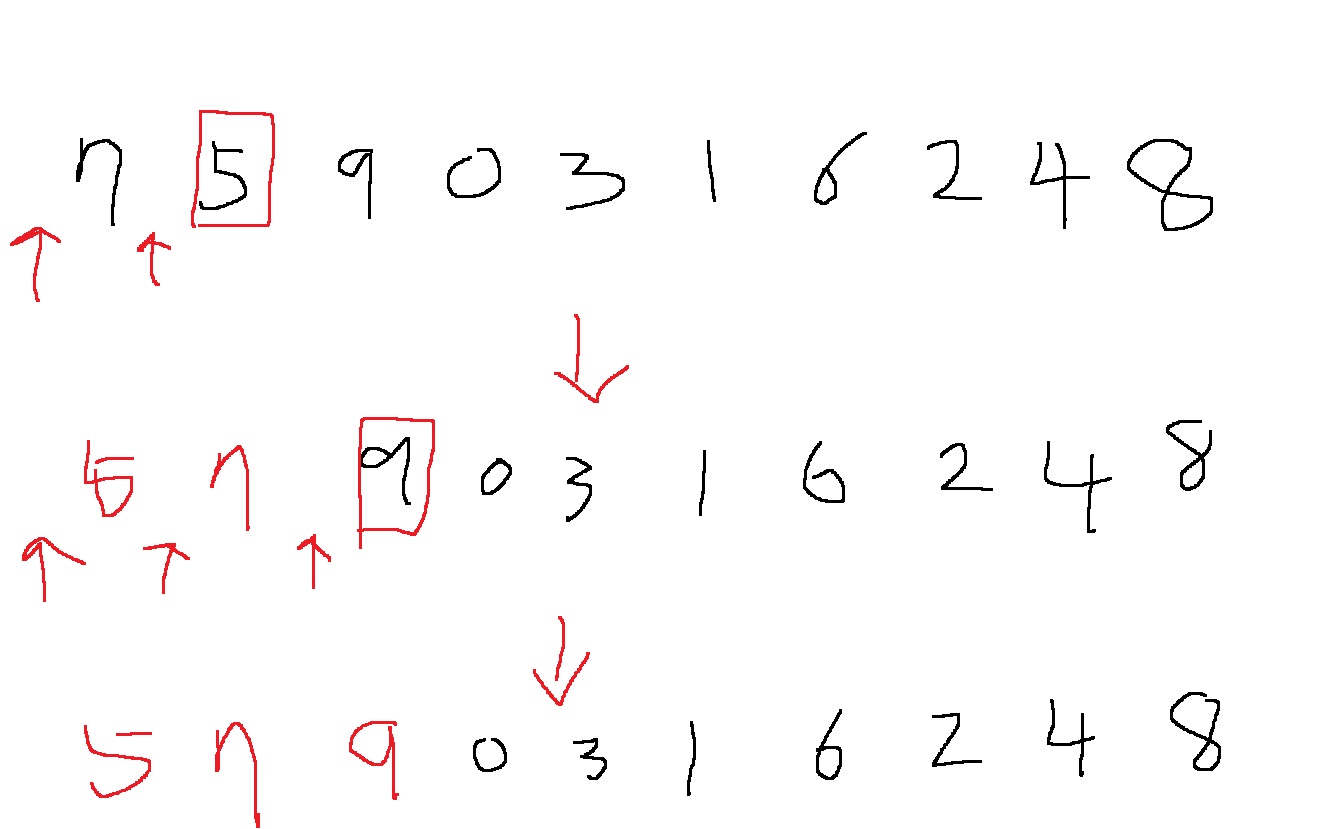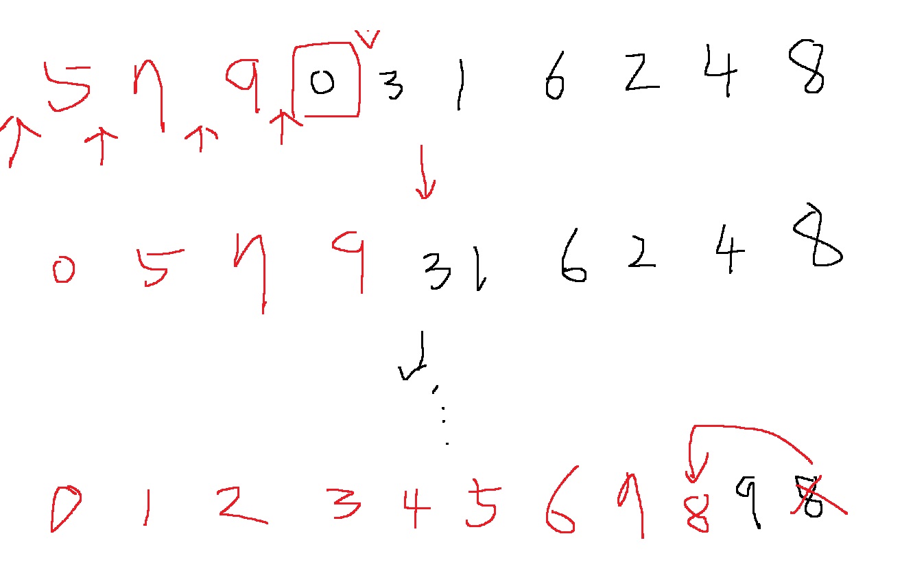 마지막으로 8은 7과 9 사이에 넣으면 0,1,2,3,4,5,6,7,8,9로 정렬이 완료된다