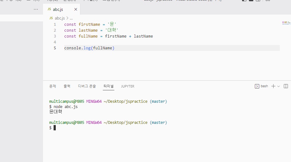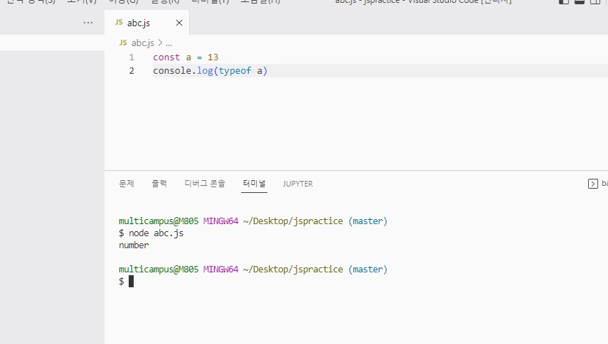 console.log(typeof (변수명))으로 해당 변수의 데이터 타입을 출력 가능함