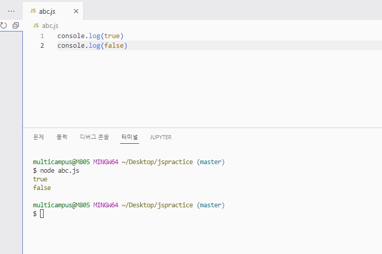 파이썬에서는 True, False로 썼지만.. 자바스크립트에서는 모두 소문자 true, false로 써야함