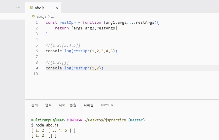 정해지지 않은 수의 매개변수를 배열로 받는다.. 마치 파이썬의 *을 쓴것과 유사하네