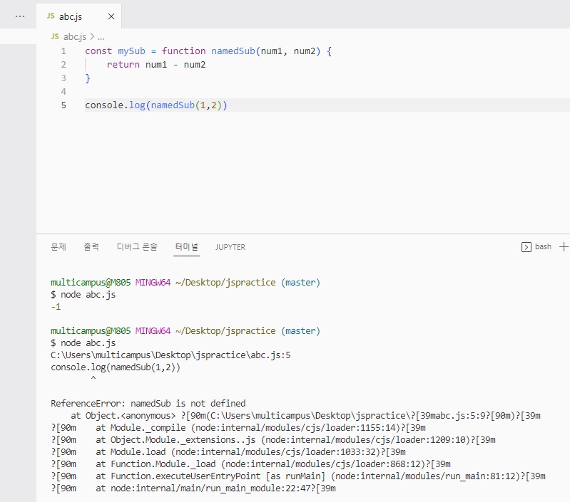 하지만 함수 호출에는 변수명으로 호출해야하며, 함수명으로는 호출할 수 없다
