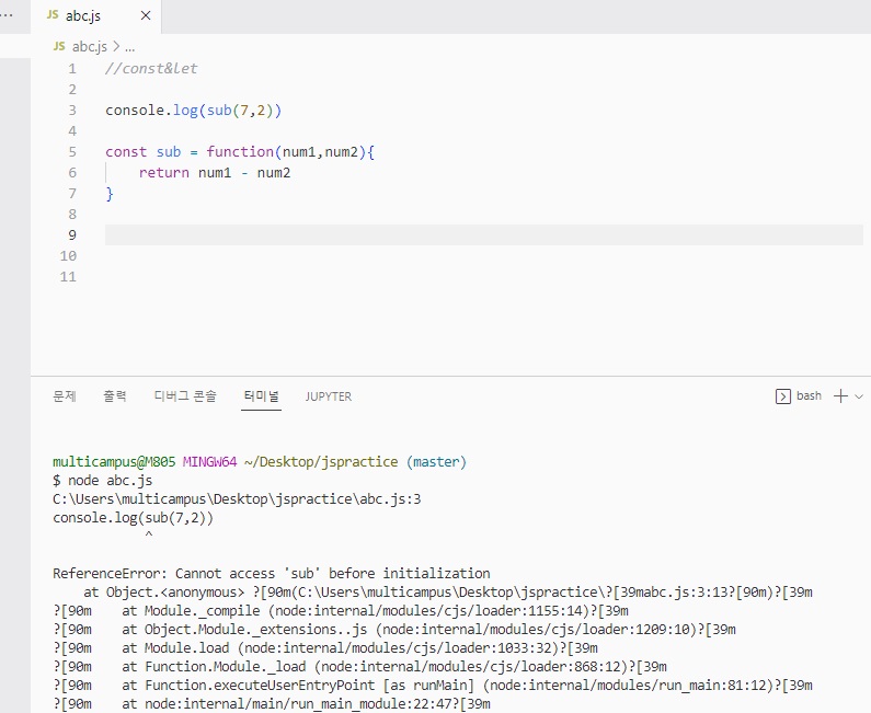 반면 함수 표현식으로 선언한 함수는 함수 정의 전에 호출 시 에러를 발생함