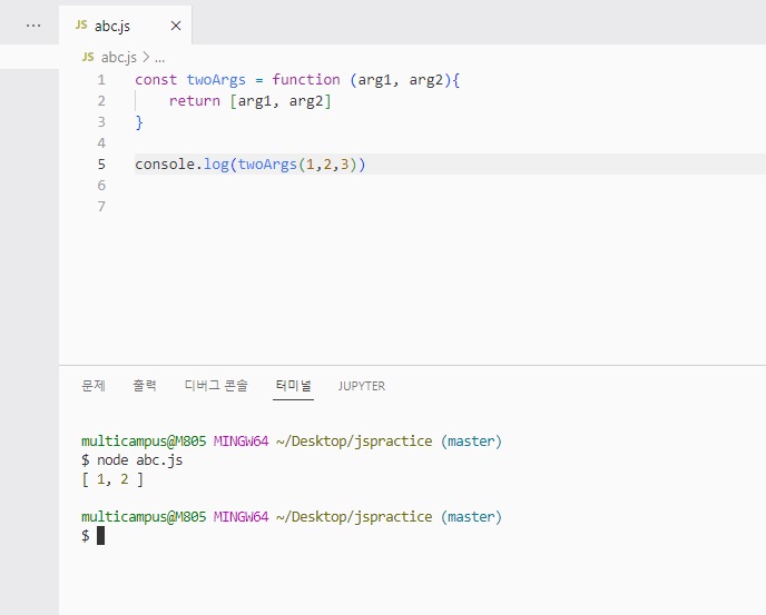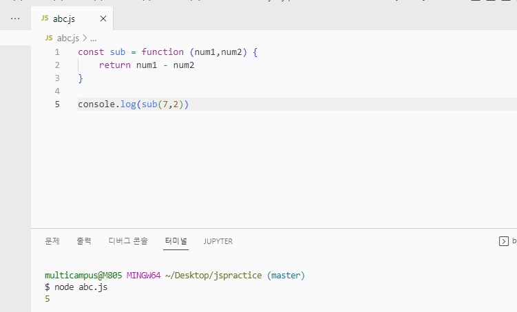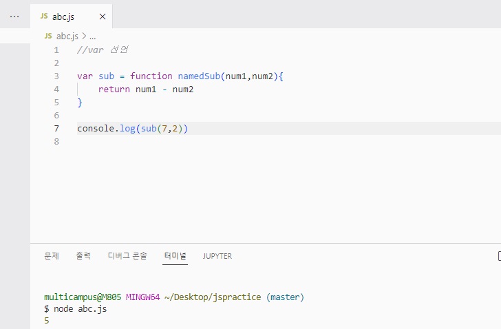 변수 키워드 변수명 = function (인자) {<수행문장>}