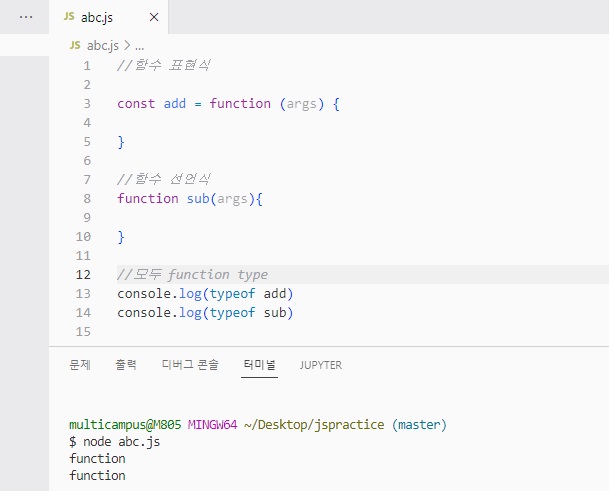 함수 선언식(function declaration), 함수 표현식(function expression)이 있다.