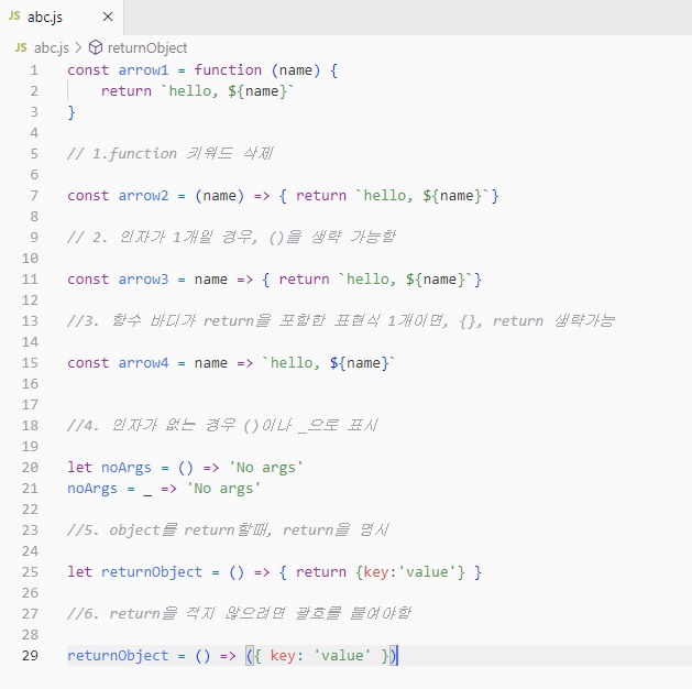 함수 내용이 한줄이면 {}와 return도 생략 가능함