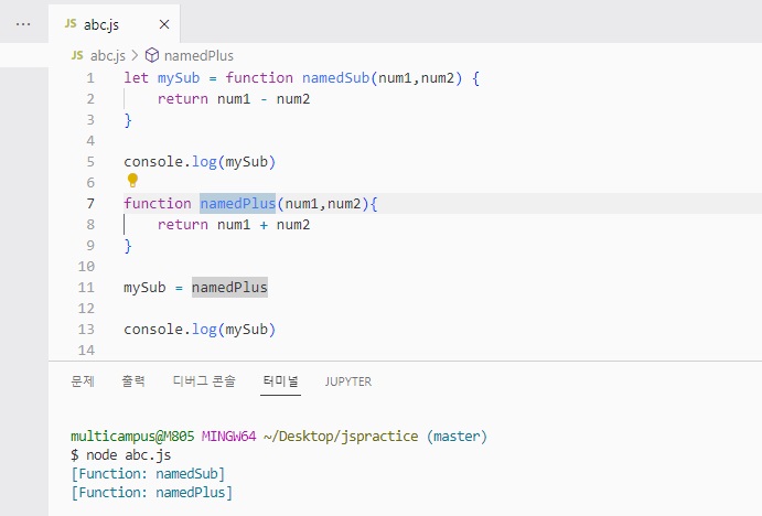 표현식에 함수명을 명시하는 것도 물론 가능하다.