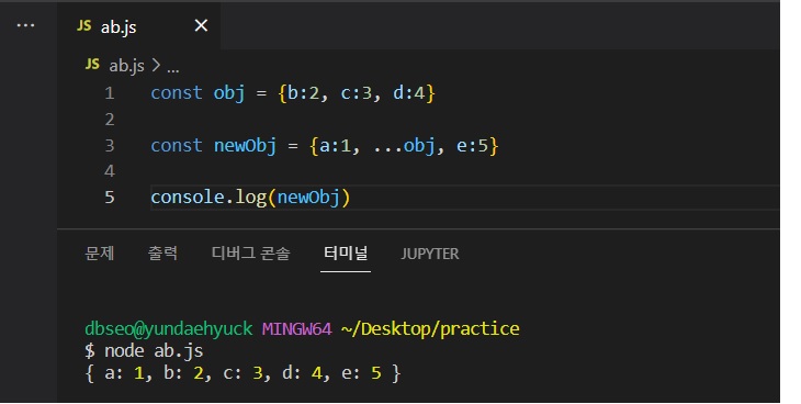 배열과 마찬가지로 전개구문으로 객체 내부에서 객체 전개 가능하다