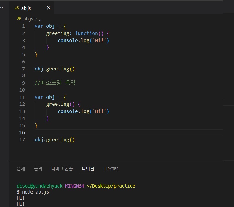 메소드를 value로 가질때, function 키워드는 생략가능하다