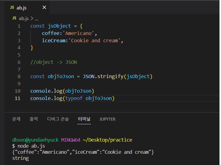 다음 JSON을 JSON.parse에 넣어주면 object로 바꿔준다..