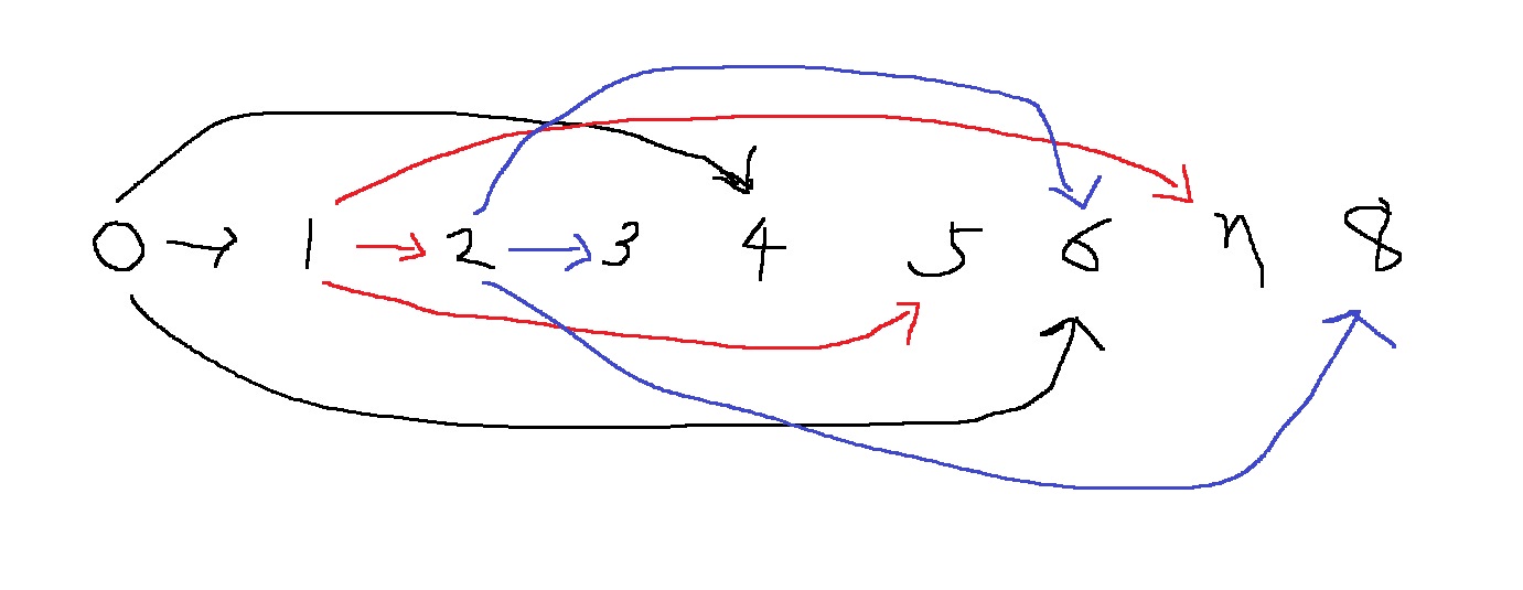 즉, dp[6] = min(dp[0], dp[2], dp[5]) +1